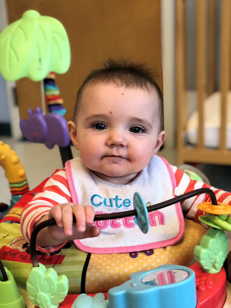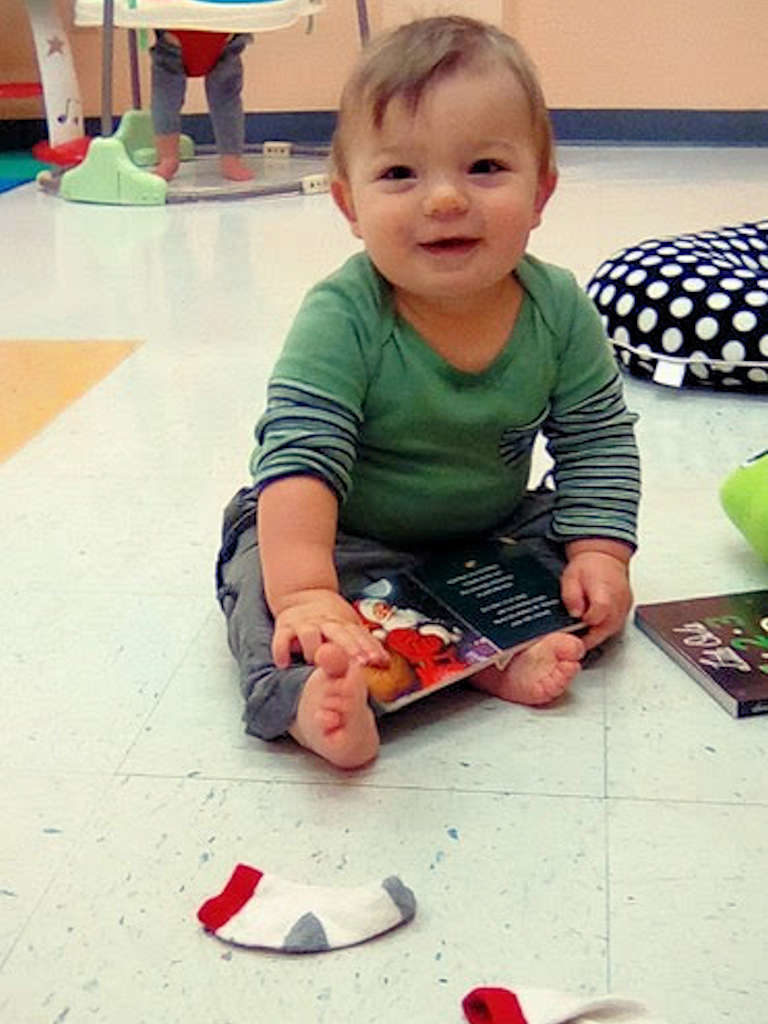 This room is for children ages 6 weeks to 1 year. Our babies learn and grow a lot during their time in the Wiggle Worms, they learn to roll, crawl, pull up on things and some children even begin walking just before they move up to the Busy Birds.