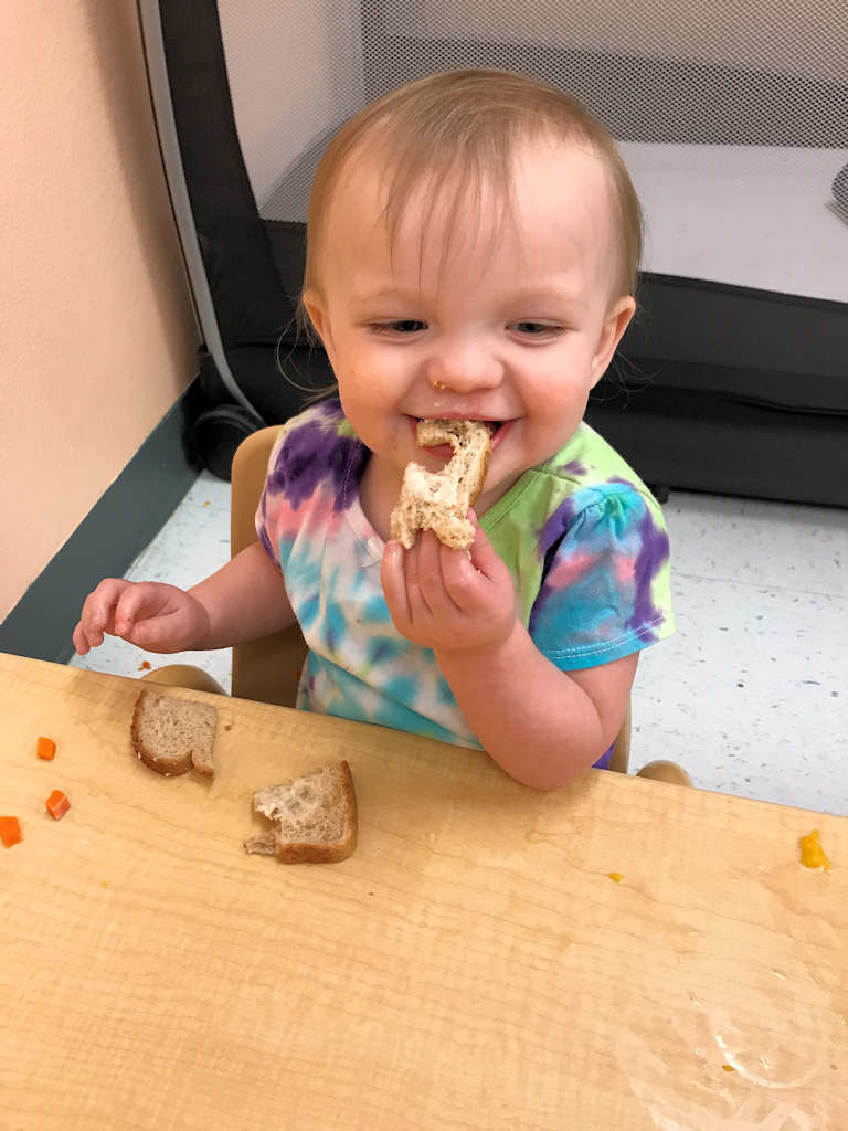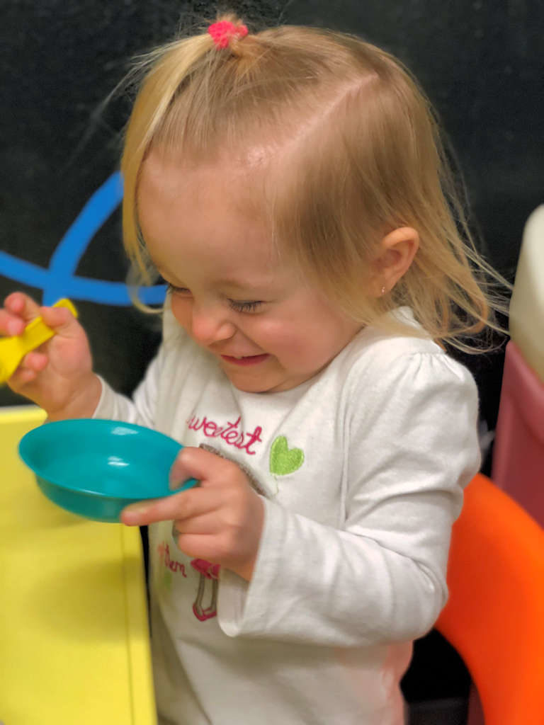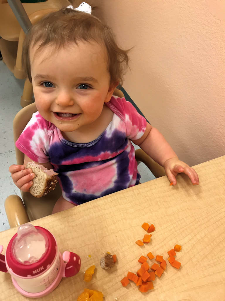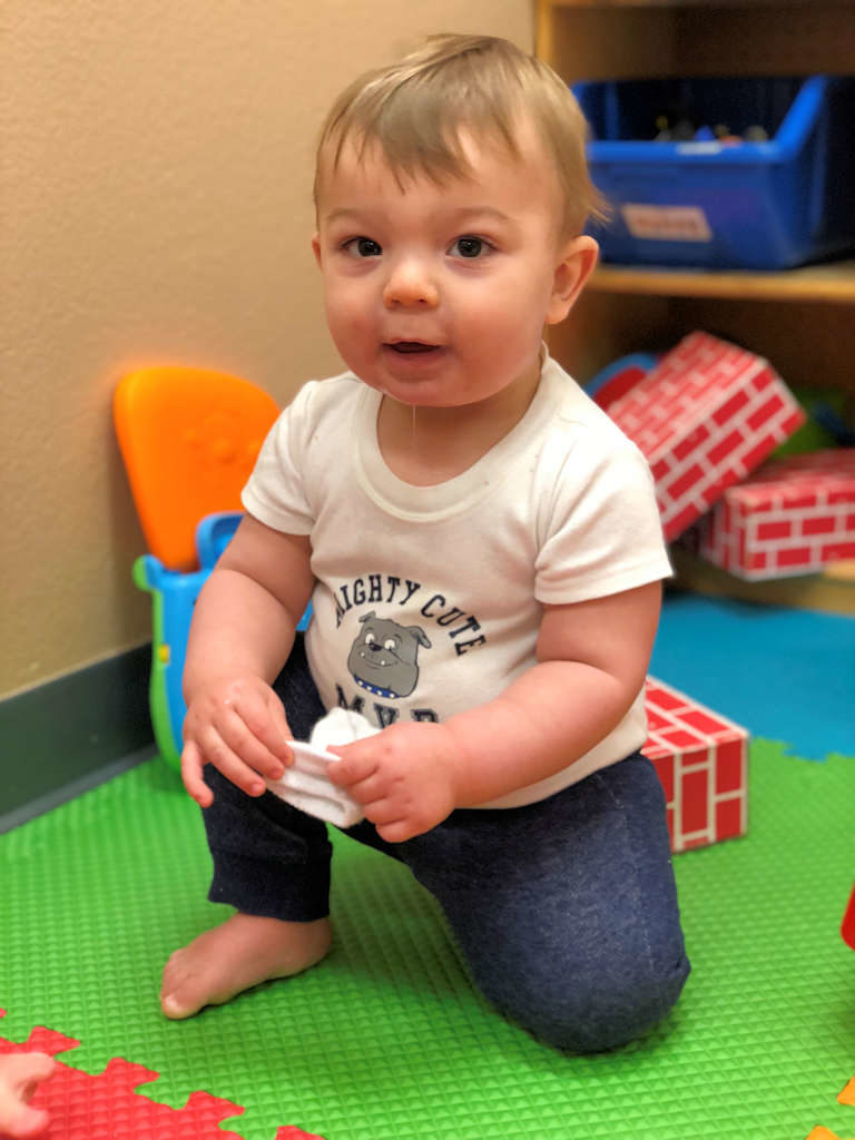 Our young One Year Olds love being in the Busy Birds class. They get to work on improving their fine and gross motor skills while working on social skills and language development. They get to begin to experience more independence as they work on developing their skills such as self feeding.