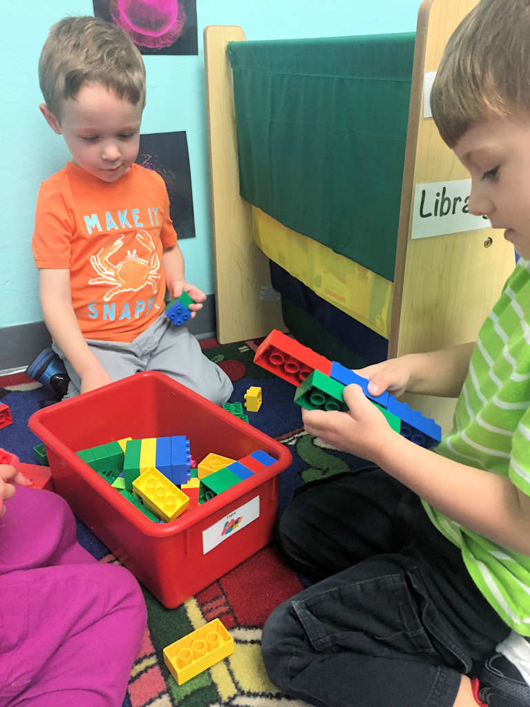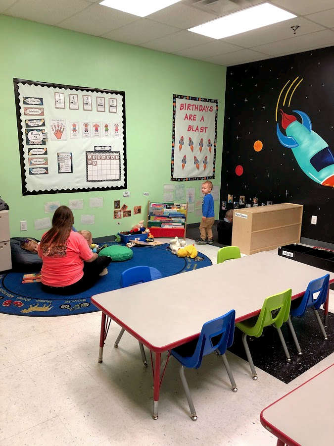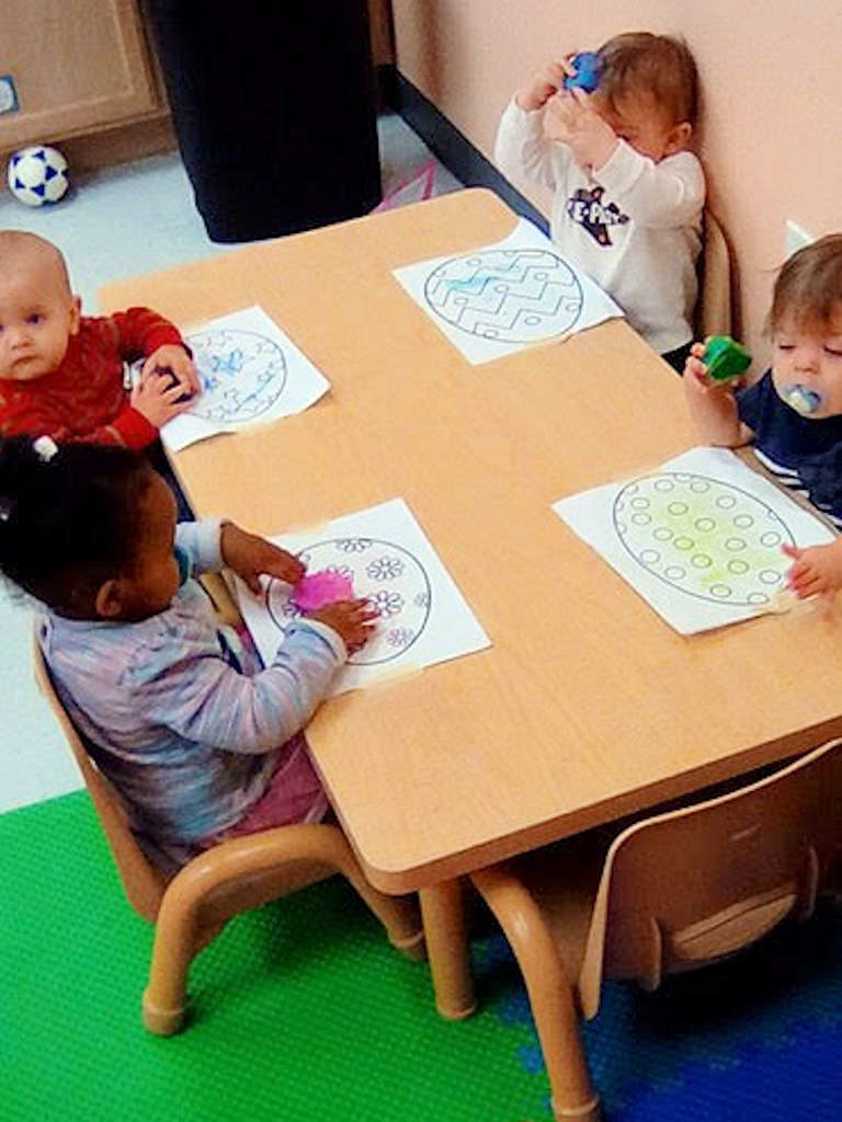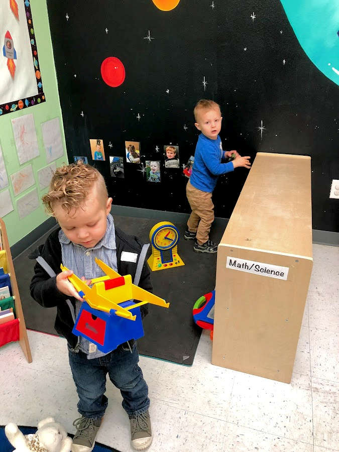 Our Two’s and Three’s class enjoy learning and playing. They participate in various educational play experiences through out their day. They continue to build on their knowledge of letters, numbers, shapes and colors. This class is also where we work the hardest on helping to get your child potty trained!